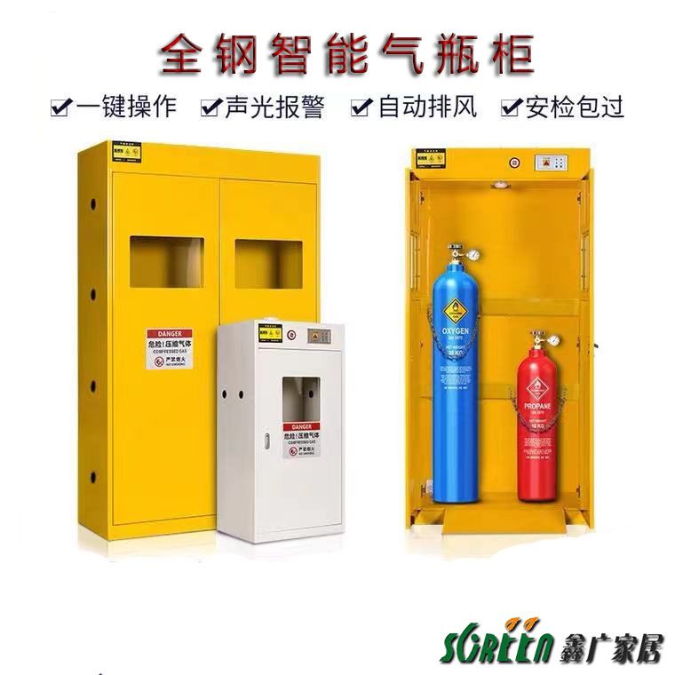 3、柜體上部設(shè)有出風(fēng)口;特別設(shè)計(jì)翻推式墊板方便氣瓶推入使用,另可配自動報(bào)警裝置和自動排風(fēng)系統(tǒng)